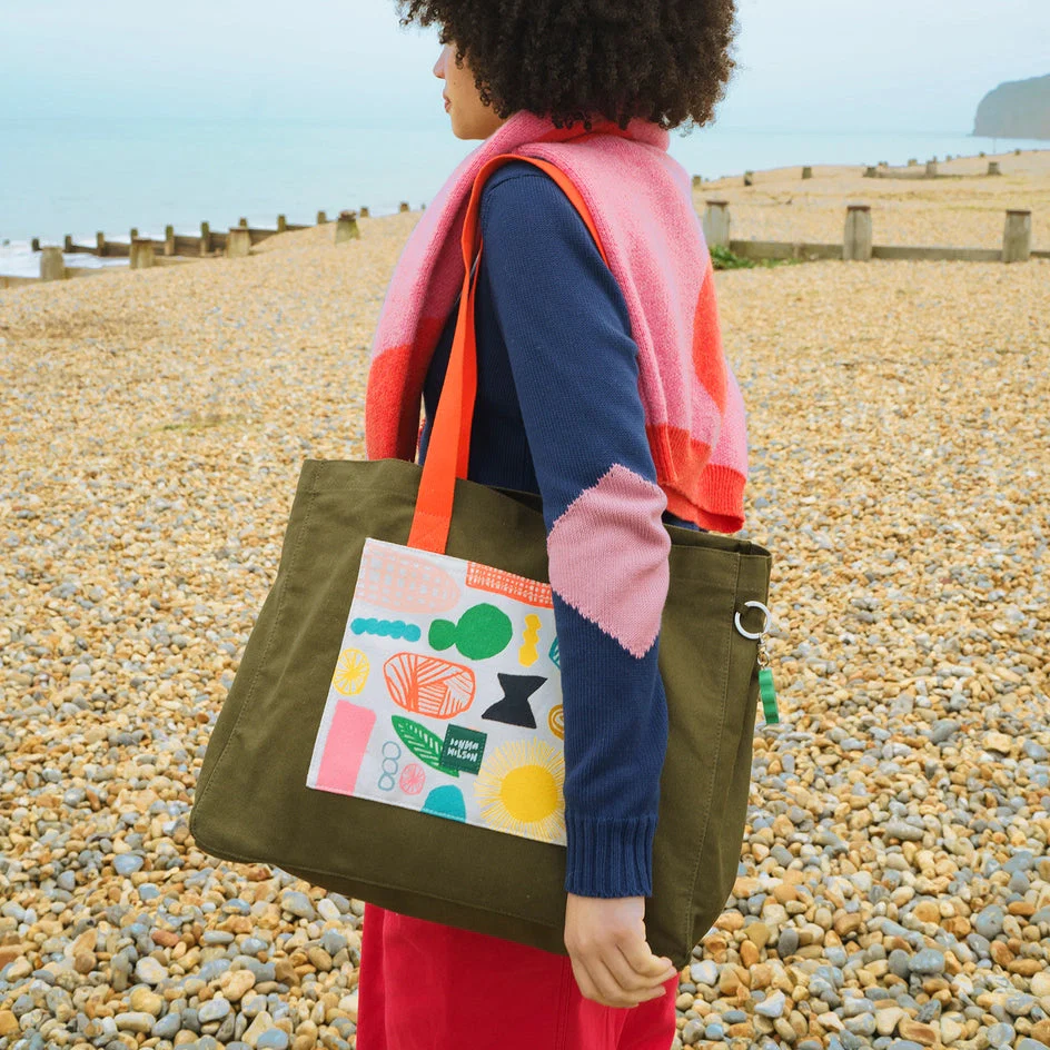 With generous colourful straps and a wide opening, the insides are easily accessible and comfortable to carry. Two poppers on each side allow the top to open more widely if needed - when you are carrying everything for a whole day at the beach, perhaps.