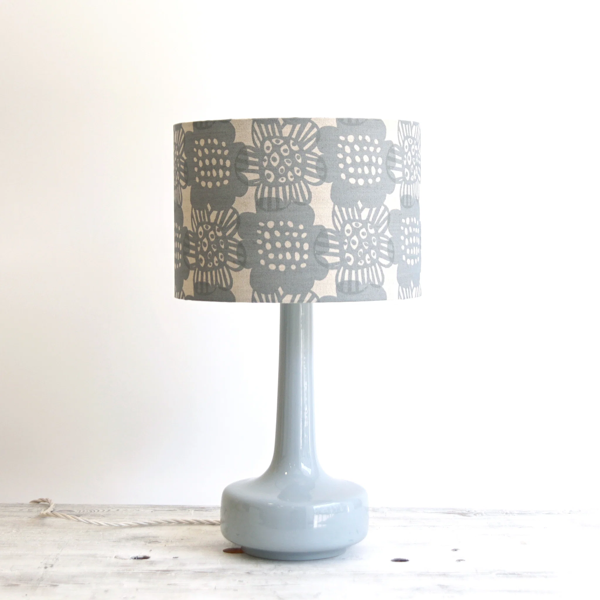 Bloom is our in-house designed by Lisa Baudry and comes in 4 gorgeous colours you are sure to love. The fabric is a hopsack linen, printed in the UK. This lampshade is made by us and can be used for a hanging pendant lamp or to sit on a lampbase.